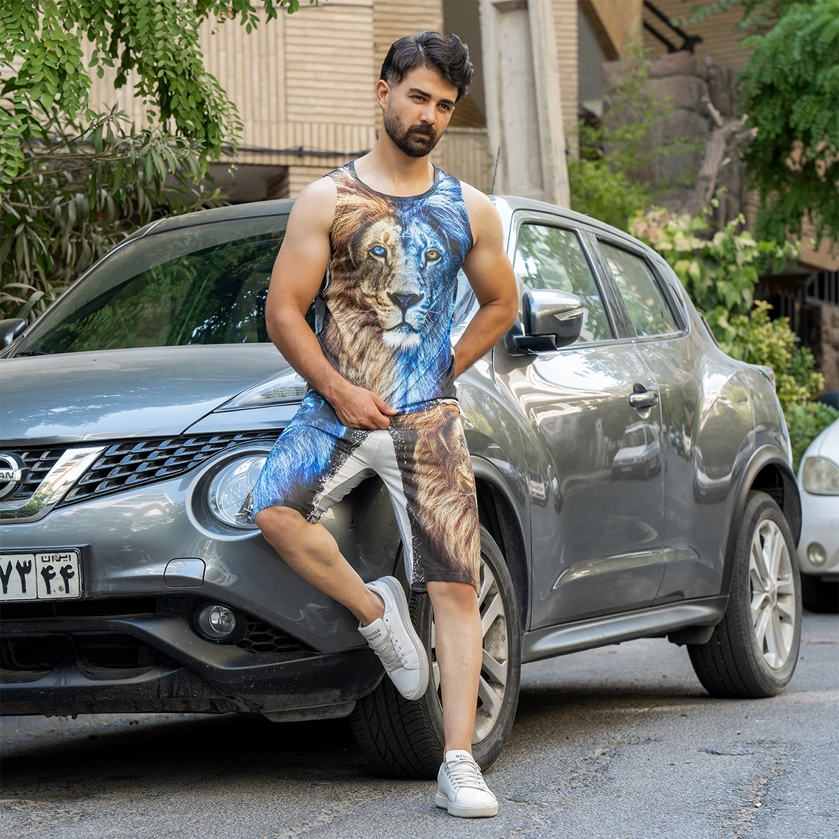 ست رکابی شلوارک مردانه طرح شیر دورنگ